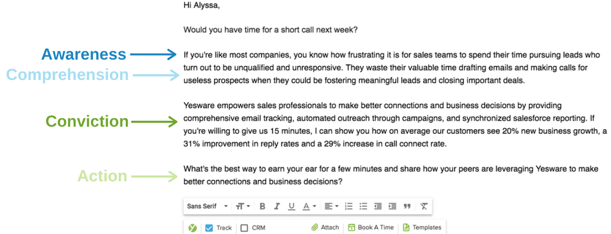 Below are the top ten formulas we’ve come across, as seen in real-world cold email examples from Yesware sales reps and others. Give them a try and see how they might improve your reply rates.
