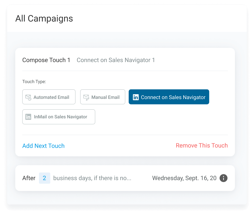 Schedule Sales Navigator touches directly into your Campaigns.