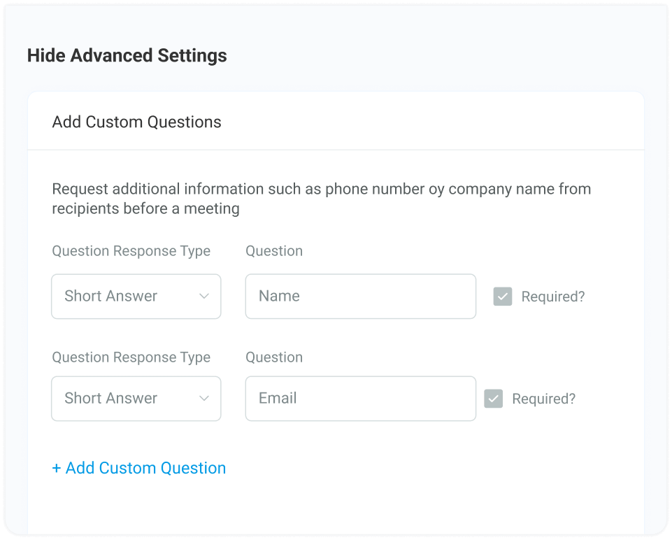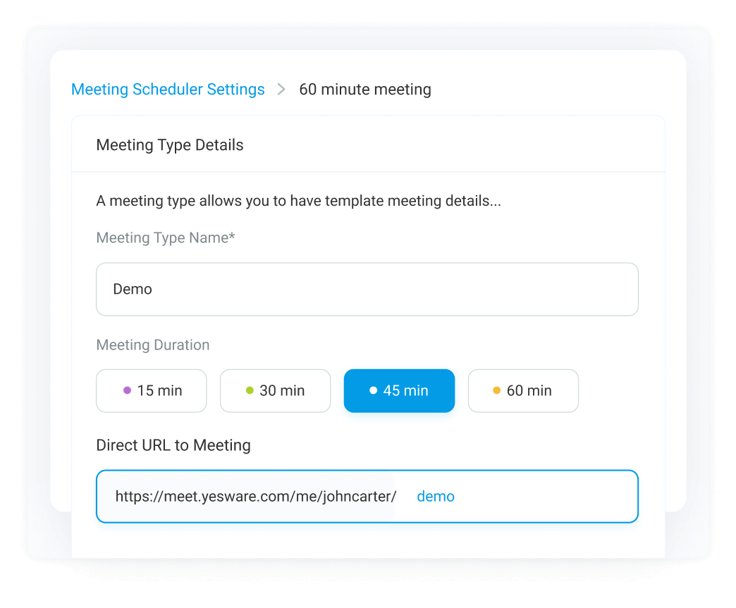 Create meeting types for common calls — like a 30-minute intro call or a 60-minute product demo.