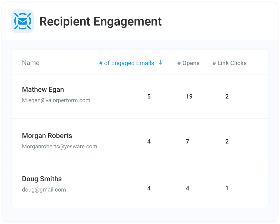 Pinpoint your warmest leads with the Recipient Engagement report.