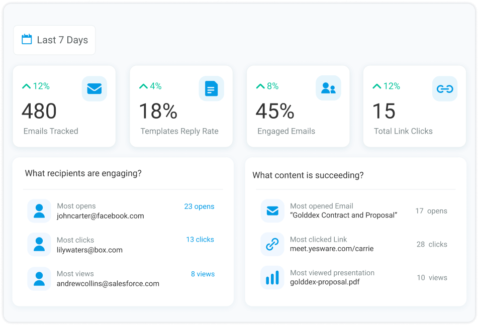 Yesware gives you visibility into the whole sales process, so you can find ways for the team to be more productive.