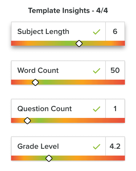 These sales email templates follow the success metrics of subject length, word count, question count, and grade level depending on open and reply rates. Get this grader in your inbox today with Yesware to always stay on top of whether your email templates are as effective as they could be.